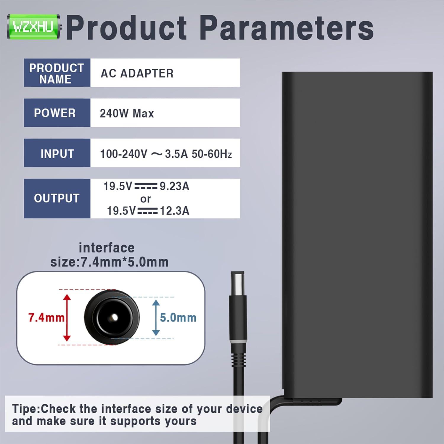WZXHU Laptop Charger compatible with Part Numbers PA-9E,PA9E,330-3514,J211H,Y044M,330-4342,J938H,U896K,LA240PM180, 7XCR6, 07XCR6, DA240PM180, 0RYJJ9, RYJJ9, 8N2T2, 450-AGCX