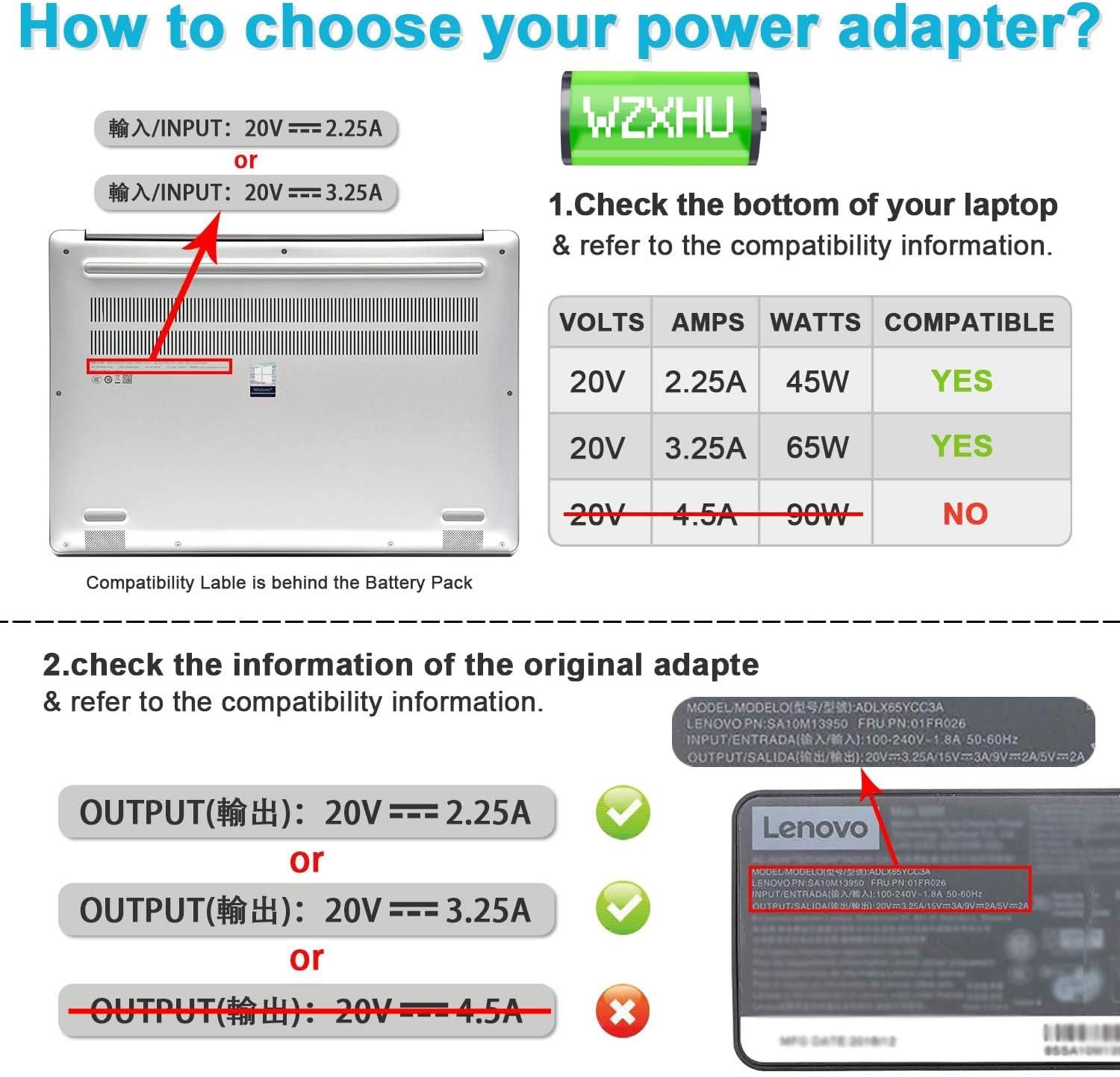 WZXHU 65watt Power Cord Compatible with Lenovo G40 G50 G70 G40 30 G40 45 G40 70 G40 80 G50 30 G50 45 G50 70 G50 75 G50 80 G70 35 G70 80 Z40 Z40 70 Z40 75 Z70 Z70 80 Z70 70 Y50 Y50 70 G400S S405D G410 G500S G505S G510S S410P S510P,Yoga 2 13 11S Pro,IdeaPad 300 500,Flex 3 10 14 15 x240 series incl Notebook