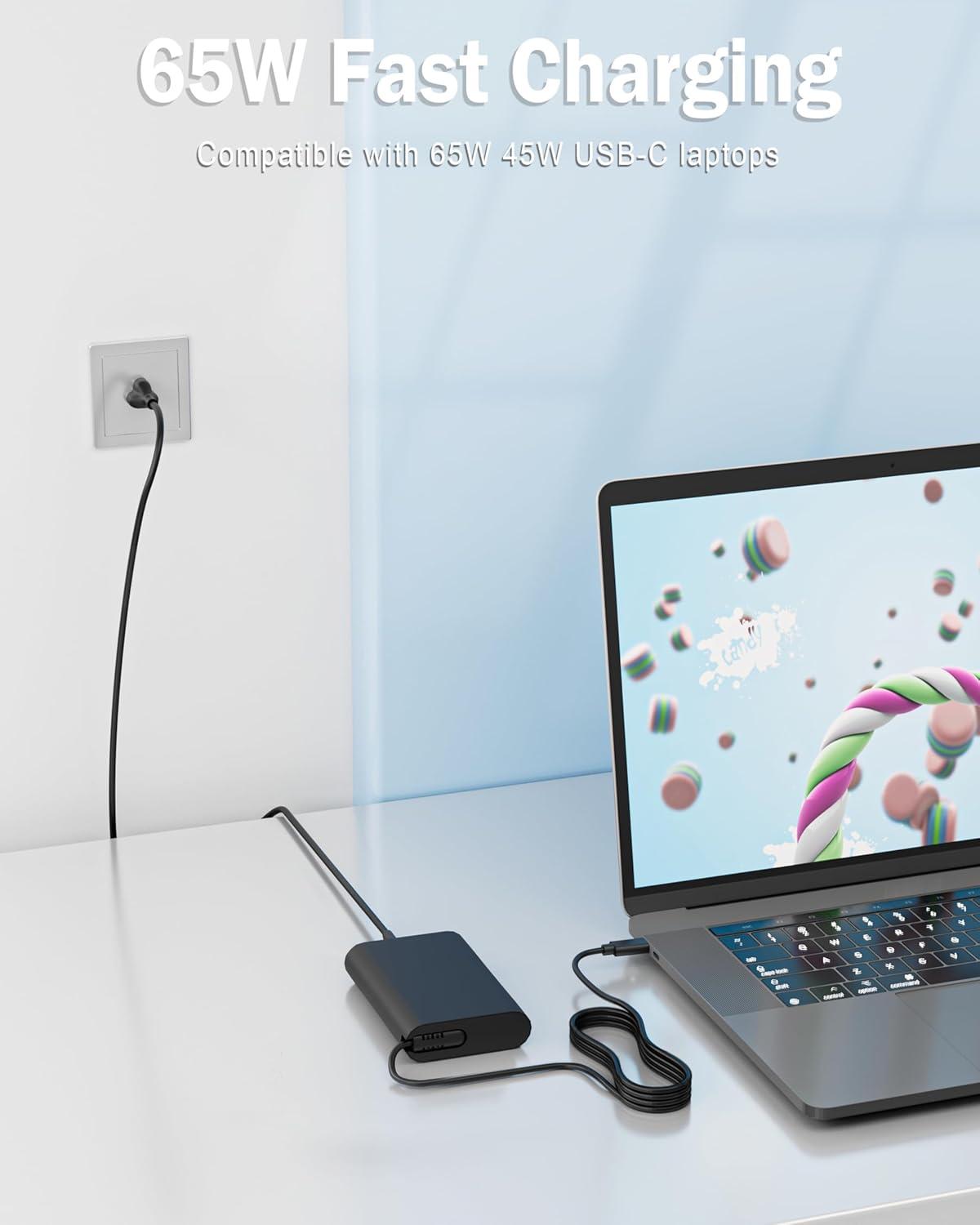 WZXHU Laptop Charger Compatible with Dell 65w Latitude 5330 5430 5440 5540 5530 7430 7340 7440 7530 7640 7330 9430 E5430 3440 3540 e5440, XPS 12 9250,XPS 13 9350 9360 9365-2in1 9370 9380, Chromebook 3100 3500 3400 3300 type c computer power cord