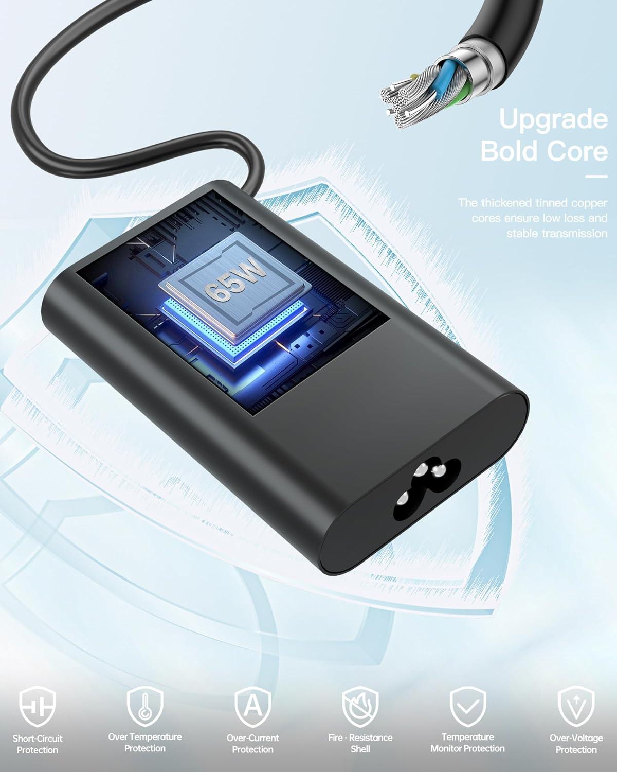 65w usb-c ac adapter charger meets electrical safety and design standards. Includes several safety mechanisms with protection against short circuits, overvoltage, overcurrent and internal overheating. Keeps your laptop safe from battery charging while are working