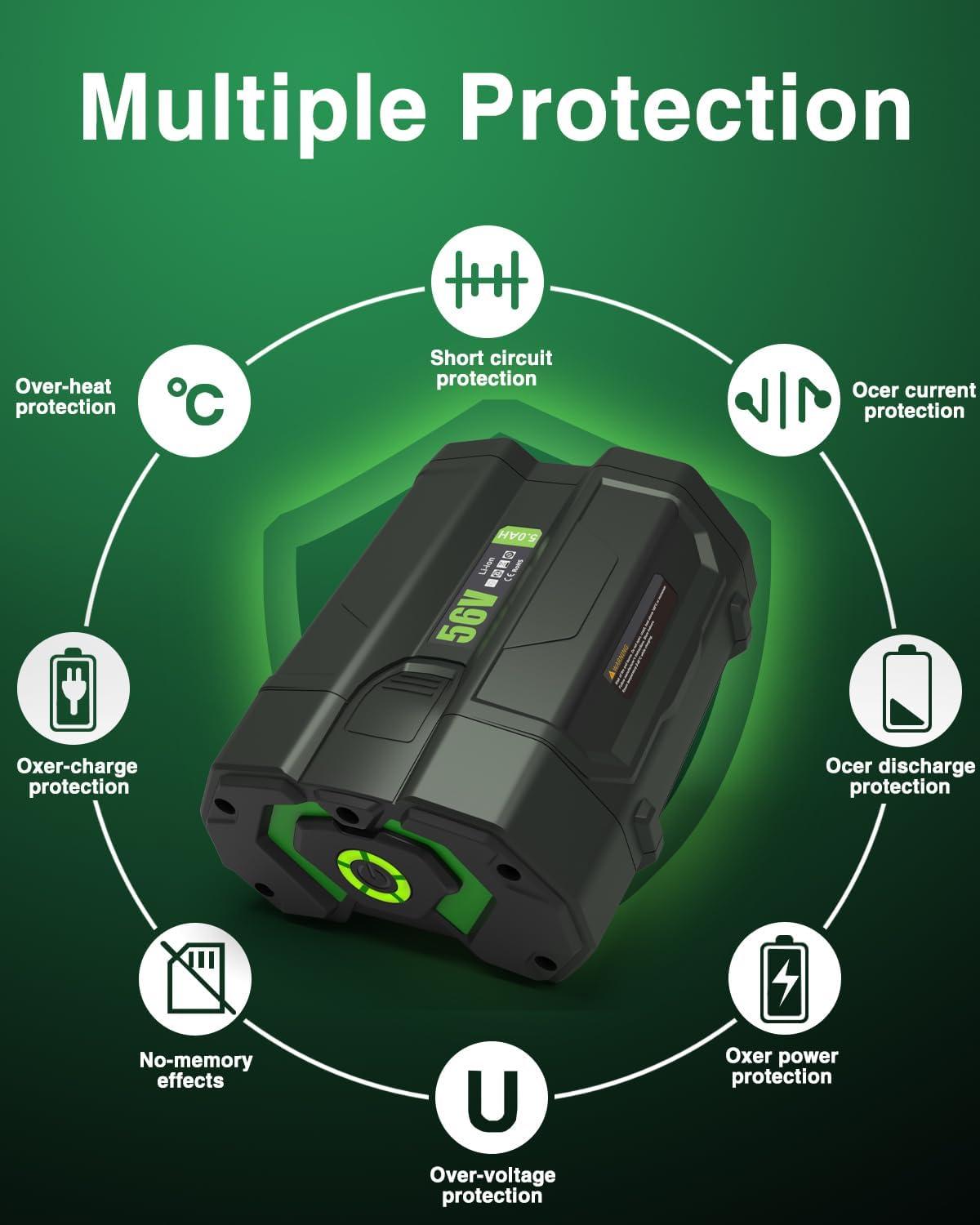 WZXHU replacement for ego battery compatible for all 56v EGO power tools, a perfect supplementary battery for your EGO lawn mower, leaf blower,Chainsaw,String Trimmer,Hedge Trimmer,Snow Blower
